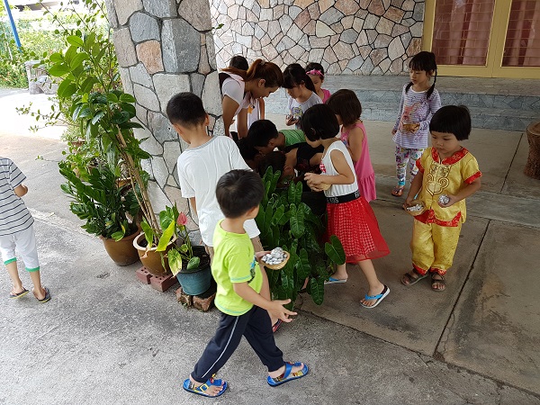 After the puppet show, the children went out to hunt for the big and small Easter eggs at our garden. They eagerly searched through the garden and excitedly piled their ‘treasure’’ in a basket. During the hunt, it happened that some children collected more than 1 egg. It was touching to watch them sharing their extra eggs with other children who had not found any.