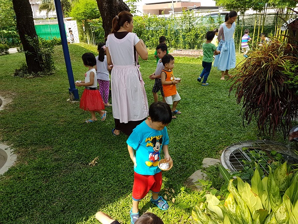 Lately the weather has been very hot as the heat wave is in full swing. We did not let children go out during outside playtime on certain days. Some days, we re-scheduled the daily rhythm so that outdoor play time is earlier in the morning to avoid the hot weather. Definitely, the children are encouraged to consume more water than usual to cope with the hot weather.