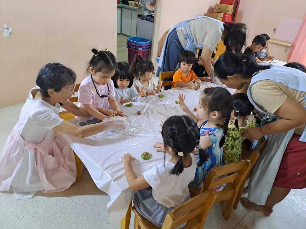 当日は中のあんこを丸め、できたムーンケーキのパッキングも、一人一人全員でしました。みんなが一生懸命やってできたムーン ケーキもとてもおいしかったので本当に嬉しかったです。小さなムーンケーキですが、庭のお花を集めて作り、すべての活動を自分たちの小さな手でやり終えたので、思い出に残る経験になったことでしょう。