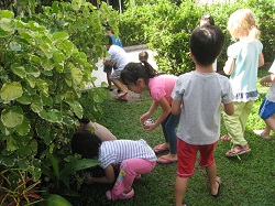 The teachers presented a puppet show on the above mentioned theme to the children before they went egg-hunting in the garden. The experienced children went searching for the big eggs while the new children were satisfied by finding many shiny-wrapped smaller eggs (groundnuts). This year nobody burst into tears because they couldn’t find a big egg. It was probably because some caring children shared their eggs with the smaller ones that everyone was cheerful and happy that morning. I beamed at the children’s joyful faces during their ‘adventure’.