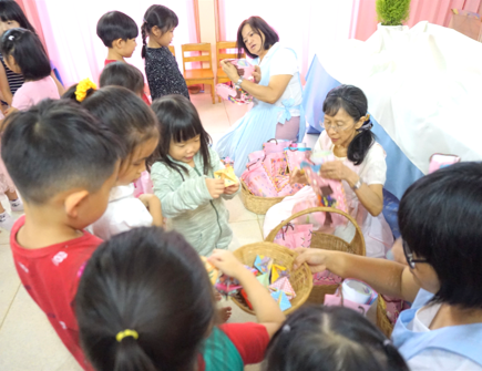 Before school re-opened, we teachers cleaned and washed the toys in the classroom, dyed the hanging and play cloths as well as cleaned the classrooms. The classrooms were clean and fresh to welcome back all the children. We kept all the same settings to cultivate a sense of belonging in the children. However, some children noticed the renovation in my office as the door opens when they pass by.