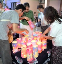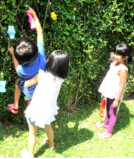 The children also helped to hang the small paper lanterns in the garden. The garden became alive with the colourful lanterns and that set the festive mood. After the lunch, children helped to tie plastic bags on chair legs to protect them from damage.