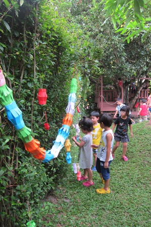 この日に向けて、一か月前ぐらいから、みんなで準備を始め、ランタン作り、歌、詩の練習などしました。お祭りが近づくに連れ、大きい子達を中心にかなり自分達だけで歌えるようになり、福建語のポエムも保育者なしでできたのには、驚きました。