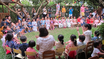 この日に向けて、一か月前ぐらいから、みんなで準備を始め、ランタン作り、歌、詩の練習などしました。お祭りが近づくにつれ、大きい子達を中心にかなり自分達だけで歌えるようになり、福建語のポエムも保育者なしでできたのには、驚きました。
