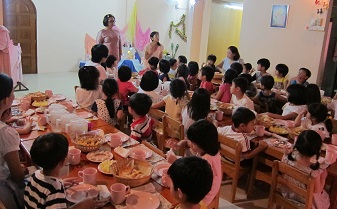 3才から6才の子供達33人が一緒に過ごす保育室は、いつも彼らの笑い声、楽しそうな話し声で一杯です。時にはけんかをして怒ったり泣いたり、「ごめんね」して「大好き」したり、活気に満ちた空間です。