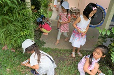 小さい子供たちにとって、ありでも、ゴキブリでも、みんな命のある大切な生き物です。ナニアでは、迷子になったありさんが部屋の中に入ってきたら、「お父さん、お母さんの所に帰してあげるね」と、そっと外に出しています。たまに、ゴキブリにも会うのですが、その時も、「お父さん、お母さんの所に帰ろうね」と言いながら、ティッシュでそっと包みます。(子供たちが見ているのでできるんですよ。)そして、キッチンの裏の方に行って、「おうちに帰ってね」と外に投げる格好をします。私がどうするか、付いて来ている子供達は、「あーよかった、おうちに帰ったね」と安心して保育室に帰って行きます。その後、私は、そっとそれを処分するのですが・・・・・。
