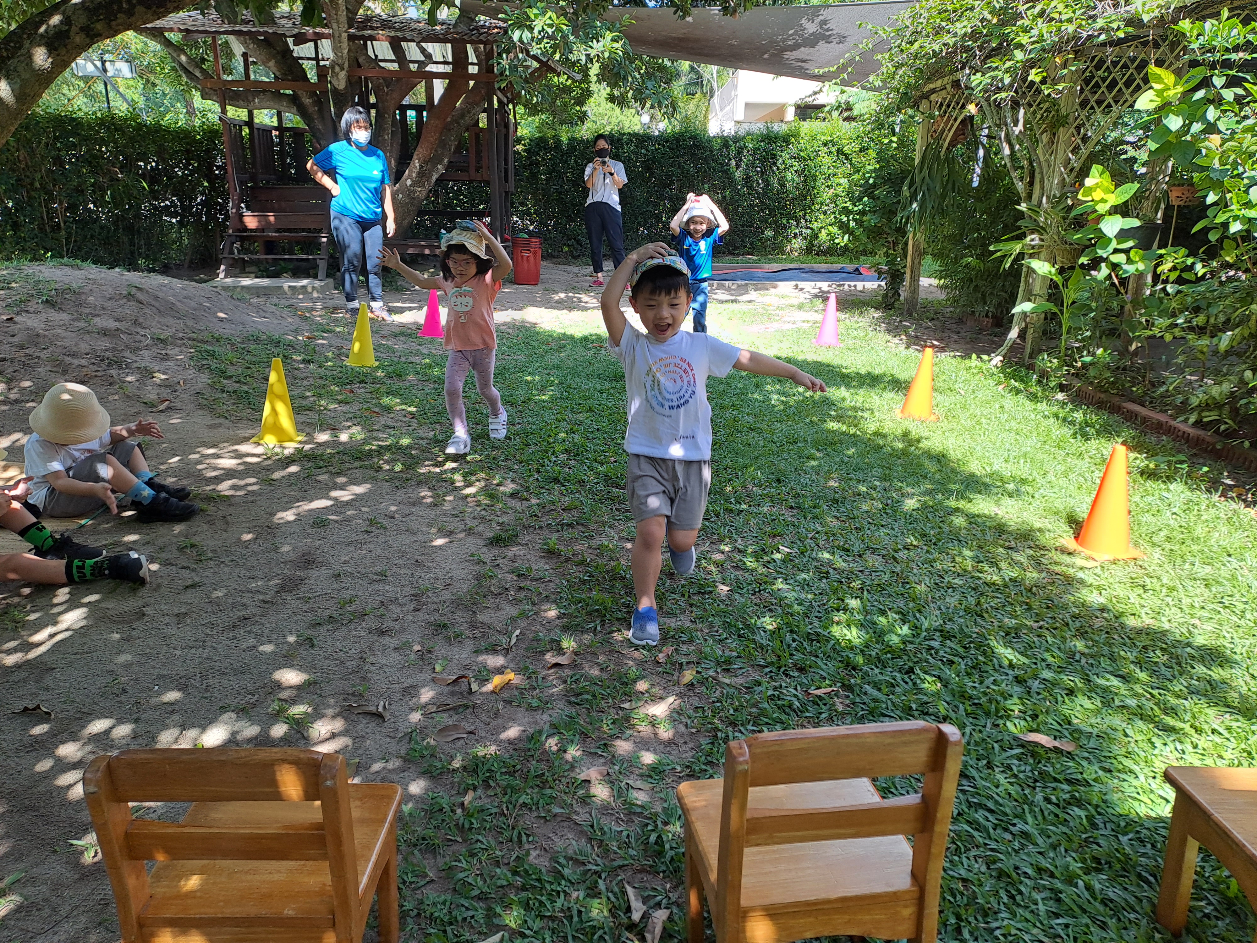 During the First Part of Sport Day, children did their performance and dances indoor. We are glad that the big children of Nania overcame their shyness and showed their confidence while doing the “Kumi Taiso” movements. Although they didn’t watch their predecessor ‘ko-ko’ and ‘jie-jie’ present these movements last year, they could mastered the movements and were excited to show small children their skill on Sports Day. Later, they also guided the small children for the movement.