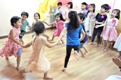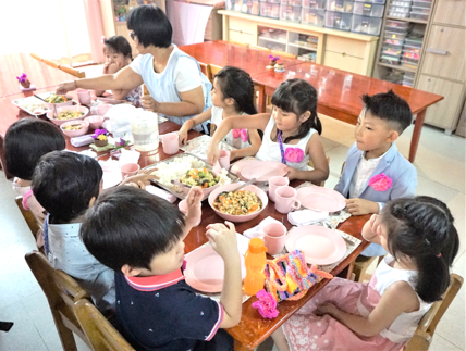 While waiting, the children played happily and creatively in the Japanese classroom as it was a day off for the Japanese children. They then had their morning snack before we start the ceremony.