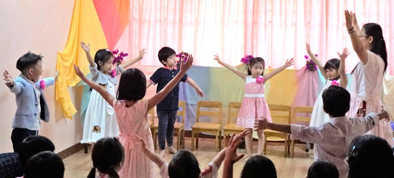 The highlight of the ceremony has to be when they recited the action poem ‘I am a Star’. They wore their beautifully drawn ‘star crowns’ on their heads. Next, they sang and danced to “Rasa Sayang” with the accompaniment of the musical instruments that they had made earlier.