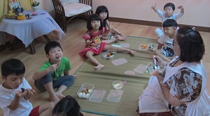 I must mention here that the 6-year-olds had hands-on experience during Bento Day by peeling eggs and also packing the bento boxes for everyone. First, they counted the number of food items for each box. Then they arranged them neatly and nicely in the box. After that, they closed the lids of the boxes and the boxes were ready to be sold. After lunch, the 5-year-olds also contributed by cleaning and wiping dry the lunch boxes for recycling.