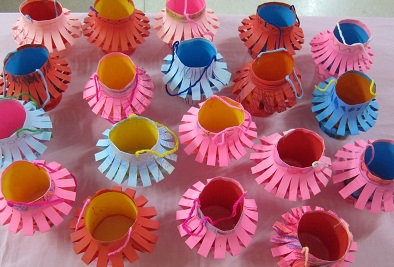 During one of the morning artistic activities, the children made and coloured their own lanterns. The 5 and 6 year-old children used their nimble fingers to twist yarn strings for use as handles for the lanterns.